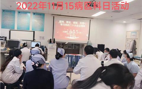 11月8日下午,我院15病区在综合病房楼医生办公室开展“感悟思想伟力,汲取奋进力量,以实际行动贯彻落实党的二十大精神”主题科日活动,会议由肿瘤六科王其美主任主持,全体医护人员参加。 会上,王其美主任带领大家通过原原本本通读学、分段精读重点学、联系实际延伸学等方式,帮助全体医护人员学习领会党的二十大精神。 科室新入职的...