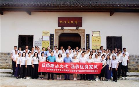 为深入学习贯彻习近平总书记关于家风建设的重要论述,扎实推进清廉医院建设,6月28日,我院组织党员干部赴益阳胡林翼故居、周立波故居开展了家庭家教家风建设主题活动。医院党委书记段云峰,党委委员、常务副院长伍大华,党委副书记、工会主席唐卫红,研究院纪委副书记、纪检监察室主任、附属医院党委委员、纪委书记黄道德,党委委员、...